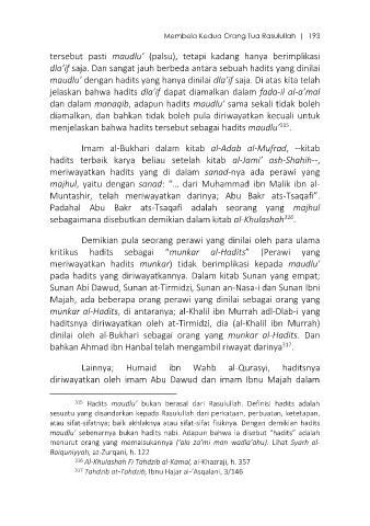 tersebut pasti maudlu’ (palsu), tetapi kadang hanya berimplikasi