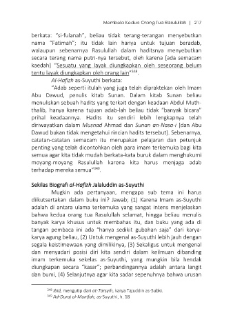 diikutsertakan dalam buku ini? Jawab; (1) Karena Imam as-Suyuthi