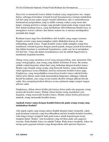 kegiatan, orang memasuki kondisi trance. Dalam situasi ketika pikirannya