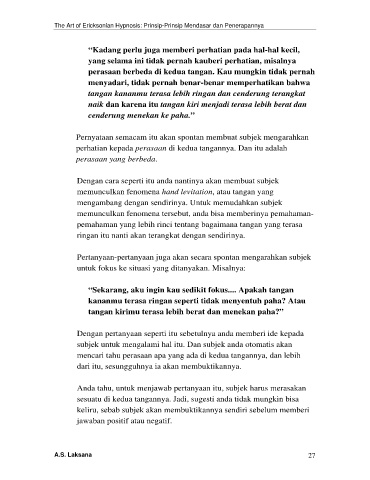 perhatian kepada perasaan di kedua tangannya. Dan itu adalah