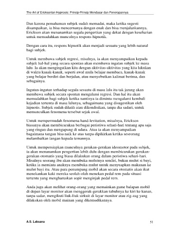 membawa subjek secara spontan mengalami regresi. Dan hal itu akan