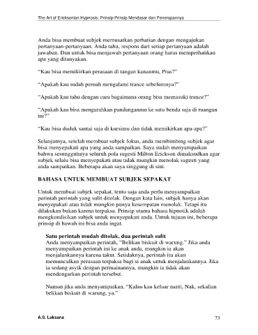 dilakukan bukan karena terpaksa. Prinsip utama bahasa hipnotik adalah