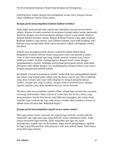 kalimat yang menghindari detail akan membuat subjek melengkapi sendiri