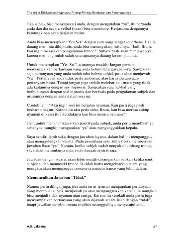 jawaban lisan “ya”. Namun, ketika subjek sudah tampak di ambang trance,