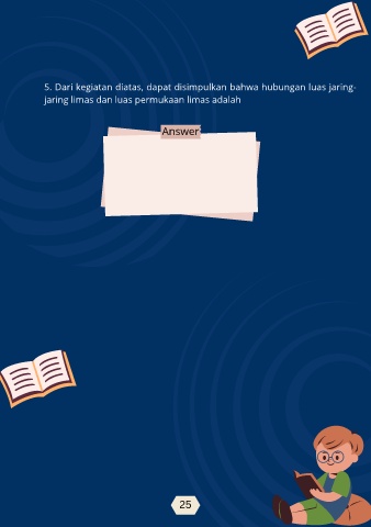 5. Dari kegiatan diatas, dapat disimpulkan bahwa hubungan luas jaring- jaring limas dan luas permukaan limas adalah Answer 25