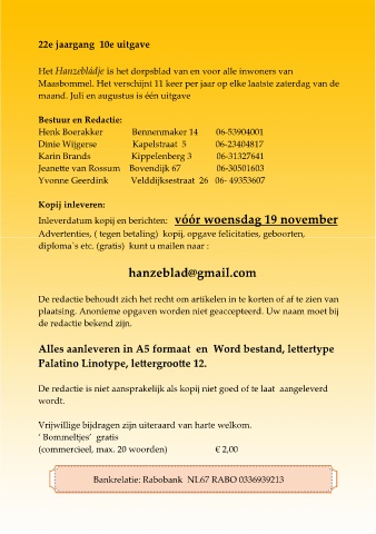 Inleverdatum kopij en berichten: vóór woensdag 19 november