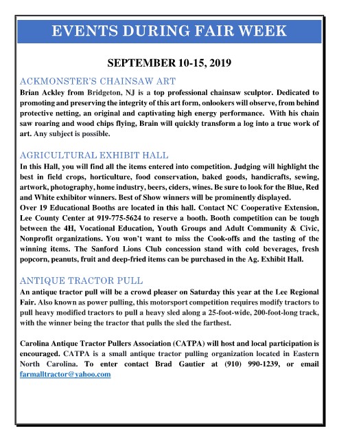 Lee County Center at 919-775-5624 to reserve a booth. Booth competition can be tough