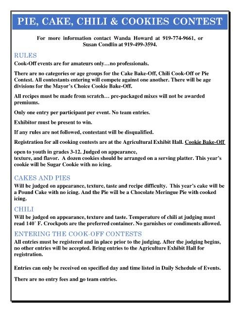 PIE, CAKE, CHILI & COOKIES CONTEST