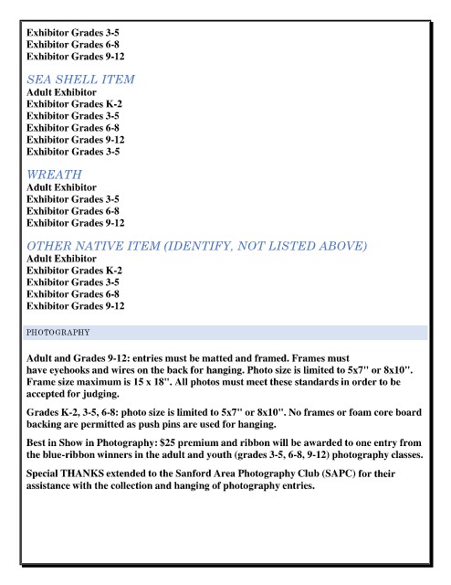 the blue-ribbon winners in the adult and youth (grades 3-5, 6-8, 9-12) photography classes.