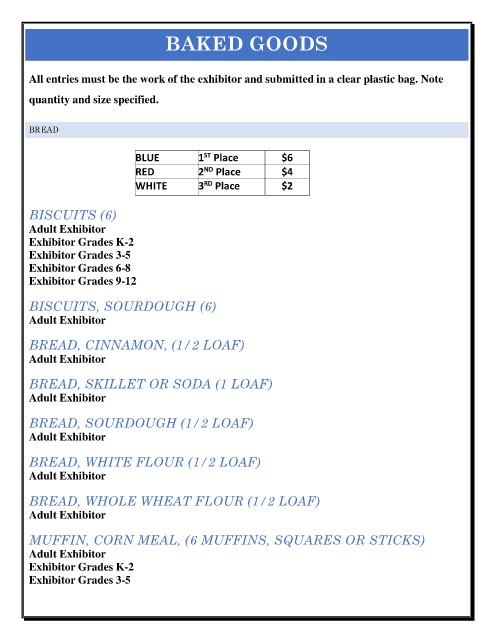 All entries must be the work of the exhibitor and submitted in a clear plastic bag. Note