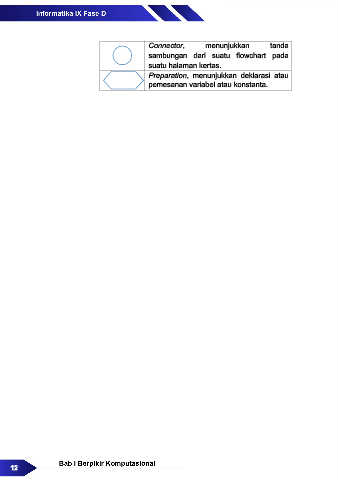 Connector, menunjukkan tanda sambungan dari suatu flowchart pada suatu halaman kertas. Preparation, menunjukkan deklarasi atau pemesanan variabel atau konstanta. 12 12