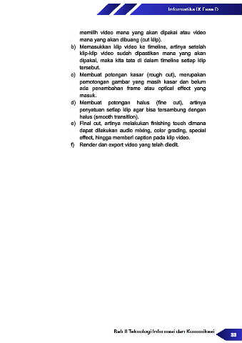e) Final cut, artinya melakukan finishing touch dimana