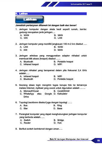 2. Jaringan komputer yang memiliki jangkauan 100 m-2 km disebut …..