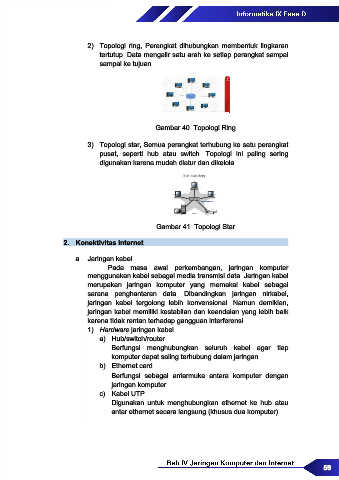 2) Topologi ring, Perangkat dihubungkan membentuk lingkaran