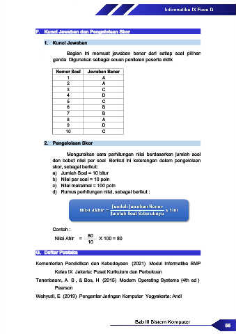 F. Kunci Jawaban dan Pengelolaan Skor