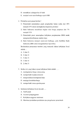 4) Bank Indonesia menjual surat-surat berharga, yaitu Sertifikat Bank
