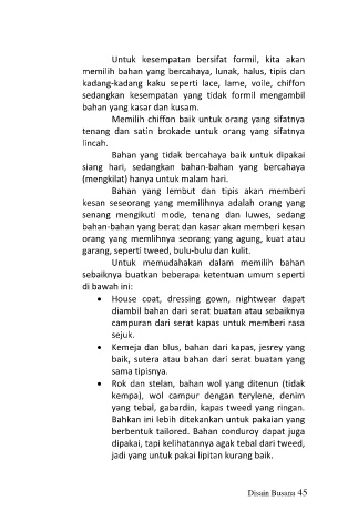 memilih bahan yang bercahaya, lunak, halus, tipis dan