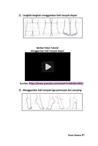 1) Langkah-langkah menggambar kaki tampak depan Berikut Video Tutorial Menggambar Kaki Tampak Depan Sumber https://www.youtube.com/watch?v=bEiddrvDkCc 2) Menggambar kaki tampak tiga perempat dan samping Disain Busana 87