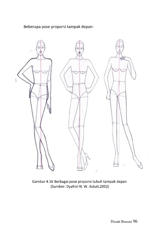 Beberapa pose proporsi tampak depan: Gambar 4.16 Berbagai pose proporsi tubuh tampak depan (Sumber: Dyahtri N. W. Astuti.2002) Disain Busana 96
