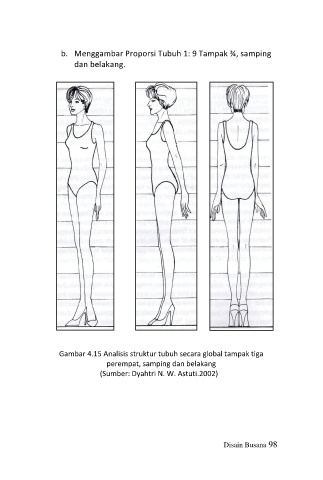 b. Menggambar Proporsi Tubuh 1: 9 Tampak ¾, samping dan belakang. Gambar 4.15 Analisis struktur tubuh secara global tampak tiga perempat, samping dan belakang (Sumber: Dyahtri N. W. Astuti.2002) Disain Busana 98