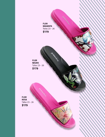 FLOR MAGENTA Tallas 23 - 26 $179 LESLY NEGRO Tallas 23 - 26 $179 FLOR NEGRO Tallas 23 - 26 $179 SUSY Tallas 23 - 26 $229 FLOR ROSA Tallas 23 - 26 $179 LESLY PLATA Tallas 23 - 26 $179