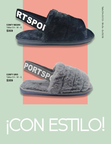 CONFY NEGRA Talla CH=22/23 - M=24 - G=25/26 Tallas CH - M - G $359 Talla CH=22/23 - M=24 - G=25/26 CONFY ROSA Tallas CH - M - G $359 CONFY GRIS Tallas CH - M - G $359 CONFY CAFÉ Tallas CH - M - G $359