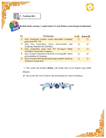 3 Saya mengetahui peran nilai Piil Pesenggiri dalam ☐ ☐
