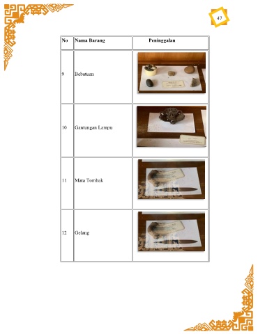 47 No Nama Barang Peninggalan 9 Bebatuan 10 Gantungan Lampu 11 Mata Tombak 12 Gelang