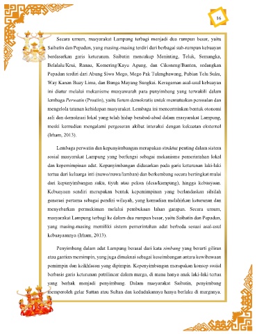sosial masyarakat Lampung yang berfungsi sebagai mekanisme pemerintahan lokal