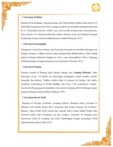 berundak, dan dolmen. Uniknya, tradisi religi di keratuan ini berlapis: dari tradisi