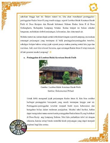 peninggalan Raden Intan II yang masih terjaga, seperti Lamban Balak Keratuan Darah