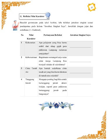 No Nilai Pertanyaan Refleksi Jawaban Singkat Saya