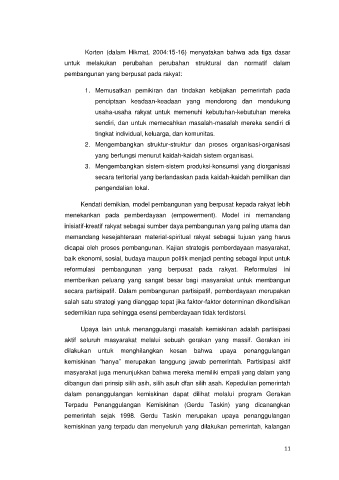 Korten (dalam Hikmat, 2004:15-16) menyatakan bahwa ada tiga dasar