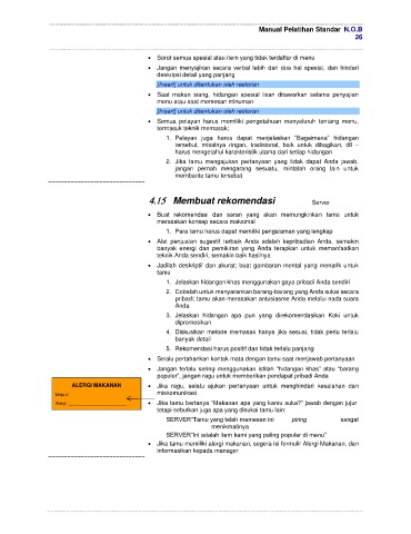 • Semua pelayan harus memiliki pengetahuan menyeluruh tentang menu,