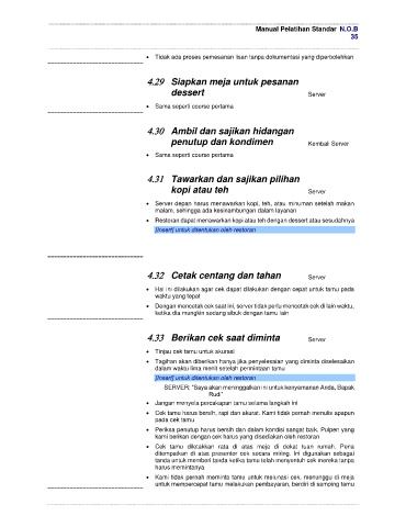 • Server depan harus menawarkan kopi, teh, atau minuman setelah makan