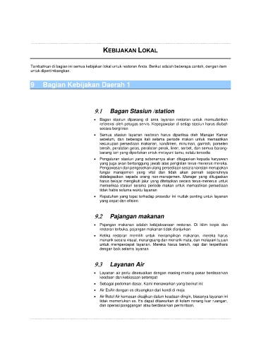 Tambahkan di bagian ini semua kebijakan lokal untuk restoran Anda. Berikut adalah beberapa contoh, dengan item