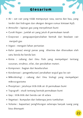 Air : zat cair yang tidak mempunyai rasa, warna dan bau, yang