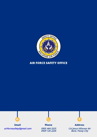 AIR FORCE SAFETY OFFICE Email Phone Address airforcesafety@gmail.com 0905 464 3325 Col Jesus Villamor Air 0929 126 2226 Base, Pasay City