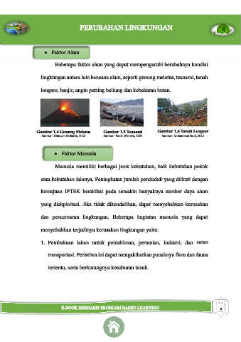 lingkungan antara lain bencana alam, seperti gunung meletus, tsunami, tanah