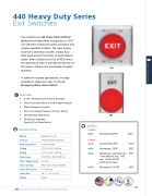 The conspicuous 440 Heavy Duty Industrial Series switch assemblies incorporates a 2 5/8’’ inch diameter mushroom button and heavy duty weather resistant contacts. The large 2 gang mushroom assembly includes a heavy duty steel bezel around the button to guard against abuse. When utilized as an Exit or REX switch, the assembly is easy to activate and stands out for persons without prior knowledge of egress operation.