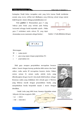 dirumuskan secara matematis sebagai berikut : Gambar 2. Usaha dilakukan oleh gaya