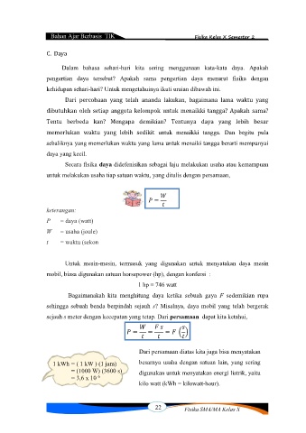 pengertian daya tersebut? Apakah sama pengertian daya menurut fisika dengan