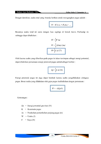 pegas. Besar usaha yang dilakukan oleh gaya pegas itudituliskan dengan persamaan :