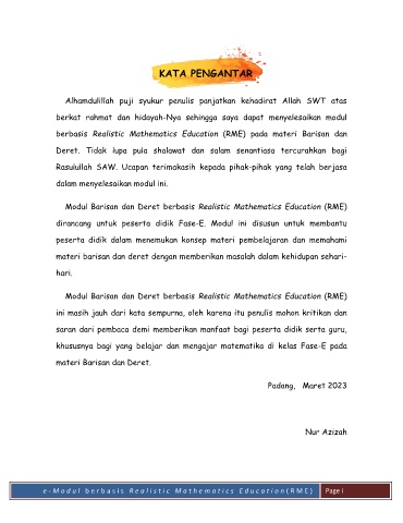 Modul Barisan dan Deret berbasis Realistic Mathematics Education (RME)