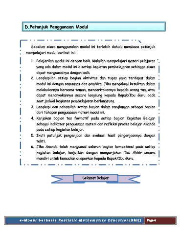 Sebelum siswa menggunakan modul ini terlebih dahulu membaca petunjuk