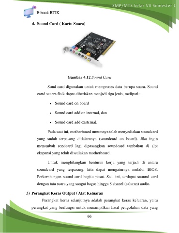 Sond card digunakan untuk memproses data berupa suara. Sound