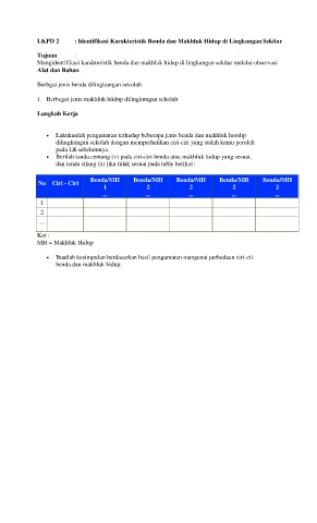 LKPD 2 : Identifikasi Karakteristik Benda dan Makhluk Hidup di Lingkungan Sekitar