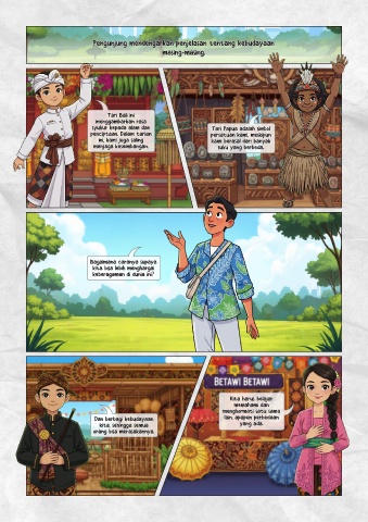Pengunjung mendengarkan penjelasan tentang kebudayaan