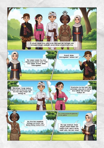 Di sebuah taman kota yang cerah, lima anak dari berbagai suku