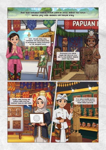 Anak-anak berkumpul kembali setelah pameran selesai, melihat hasil karya